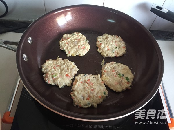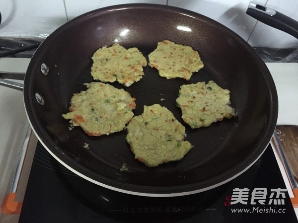 面粉量根據面糊濕軟程度,基本要能成厚糊。中小火煎,以防焦掉。