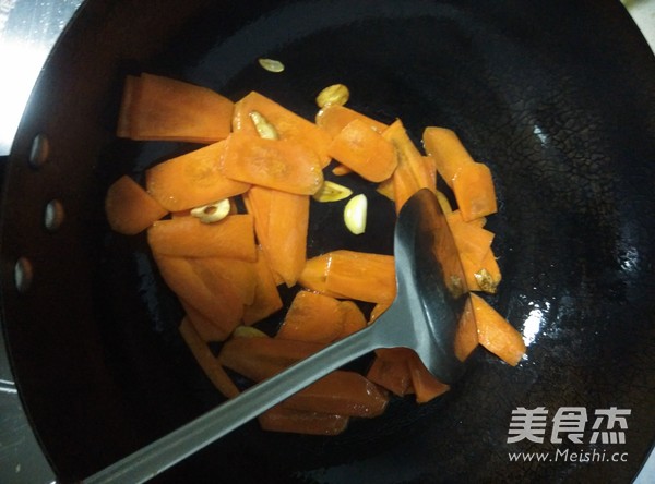 炒鍋放油,蒜片,胡蘿卜炒幾下