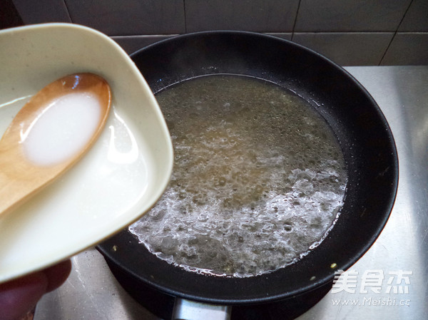 剩下的湯汁煮沸,把澱粉水倒入,勾個薄薄的芡汁