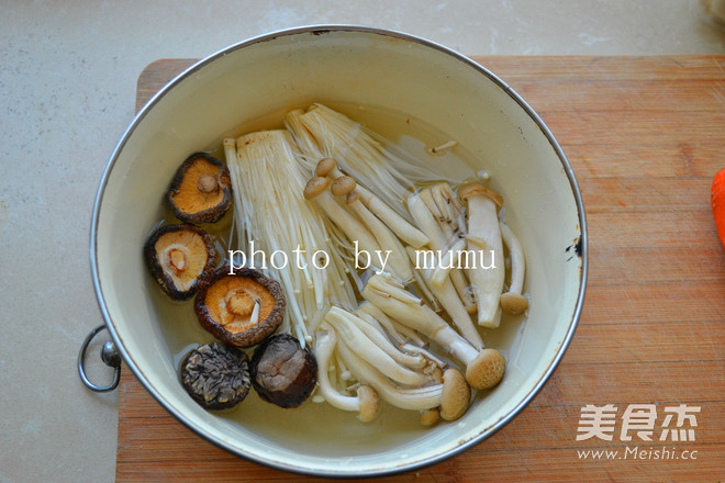 洗干淨各類菌菇,泡發香菇
