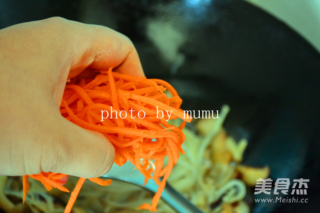 放入胡籮卜絲翻炒均勻