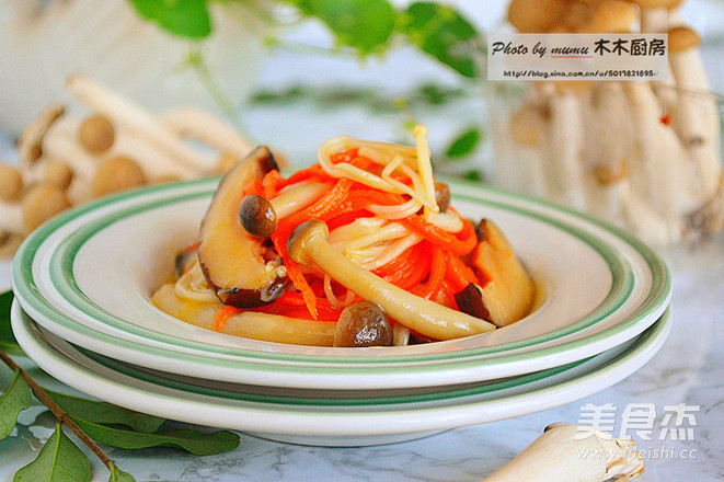 “菌菇大集合 菌菇的各種鮮加上胡蘿卜絲兒的甜 口感清淡 但鮮味毫不遜色”