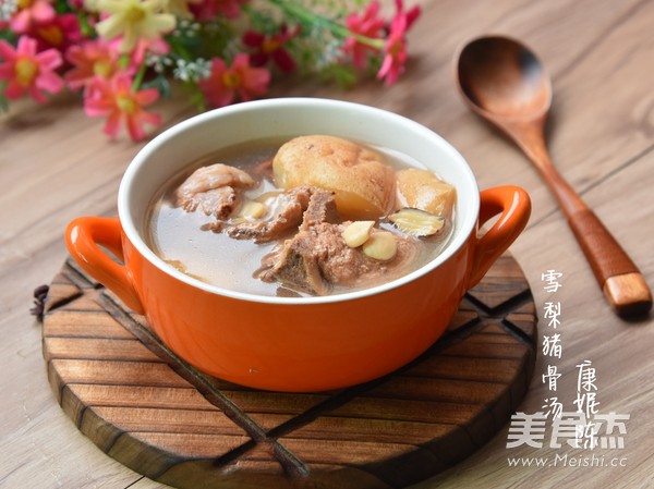 “【雪梨南北杏豬骨湯】是一道美味清甜健康營養的補脾和胃益氣生津湯水。雪梨具有生津止渴、益脾止瀉、清熱潤燥的功效,南北杏具有止咳平喘的作用,雪梨南北杏雪梨湯入口清甜,有祛痰下火、滋養清熱、清心美膚的靓湯。”