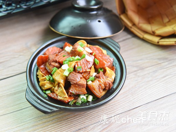“紅燒肉很受人們喜愛,我個人對紅燒肉又愛又恨,愛它肥而不膩,愛它滋潤的口感,恨它的高卡路裡。如果紅燒肉只做每一人一塊,端上桌會顯得很獨單。豆腐結和胡蘿卜就是為了陪伴紅燒肉的,豆腐結和胡蘿卜吸收了紅燒肉的油脂,滋潤味美,而紅燒肉又因為有豆腐結和胡蘿卜減少了油膩,吃起來更健康。”