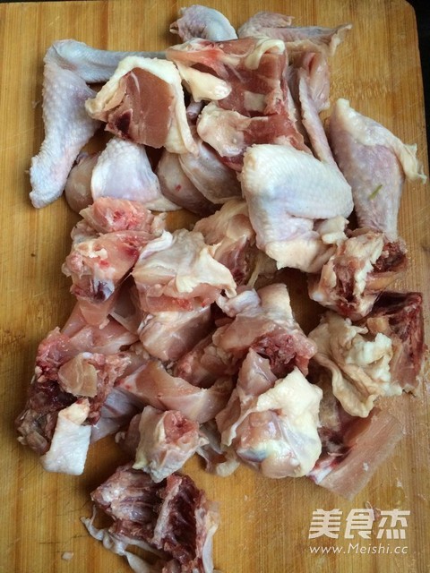 三黃雞洗淨,去掉雞尾尖和雞油,切段