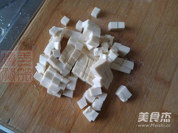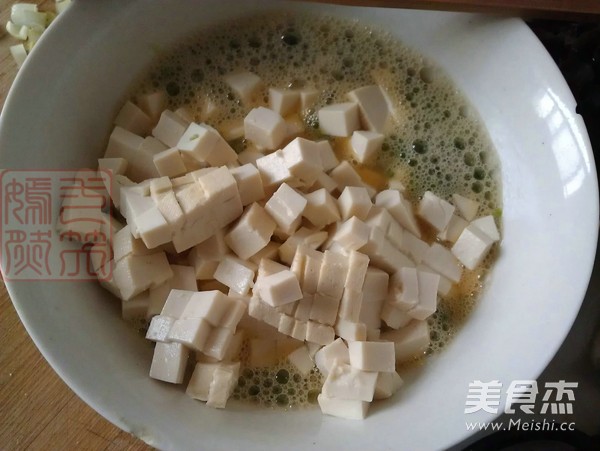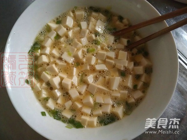 南豆腐很嫩,所以切時要在刀上沾少許水,小心切成丁,放入蛋液後也要輕輕攪拌,不然很易碎。