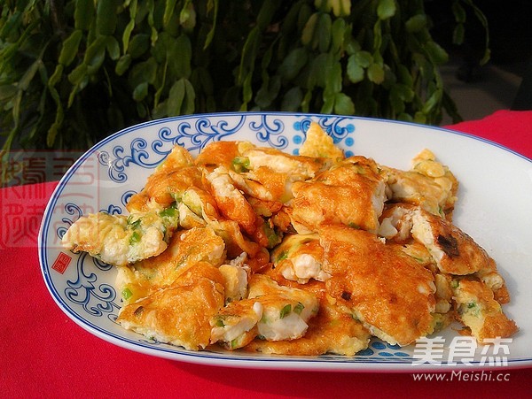 待表面凝固後,翻面煎,待全部煎熟,劃成小塊即可。