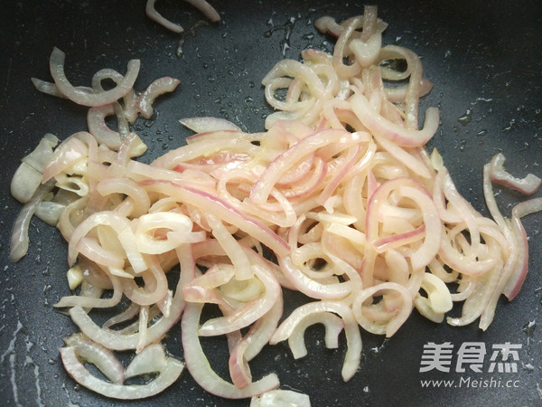 炒到洋蔥發軟。洋蔥超軟後口感發甜,能解牛肉的膻氣。
