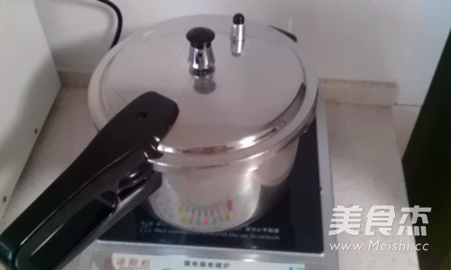 開火,炖到壓力鍋開始出聲,改小火