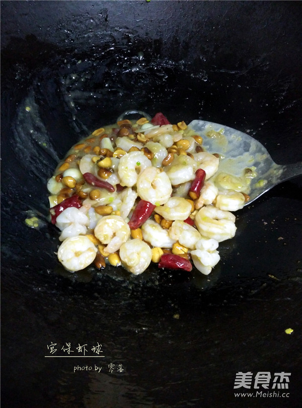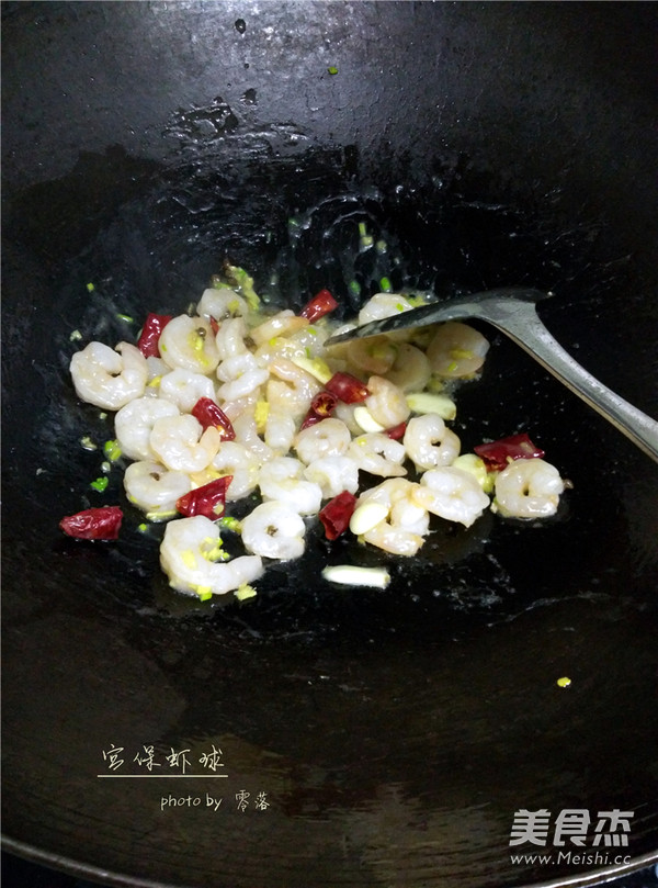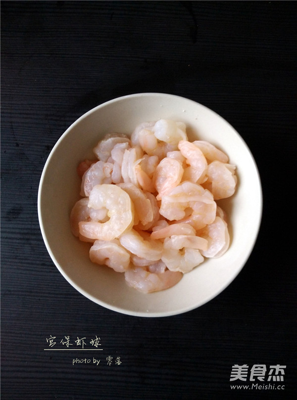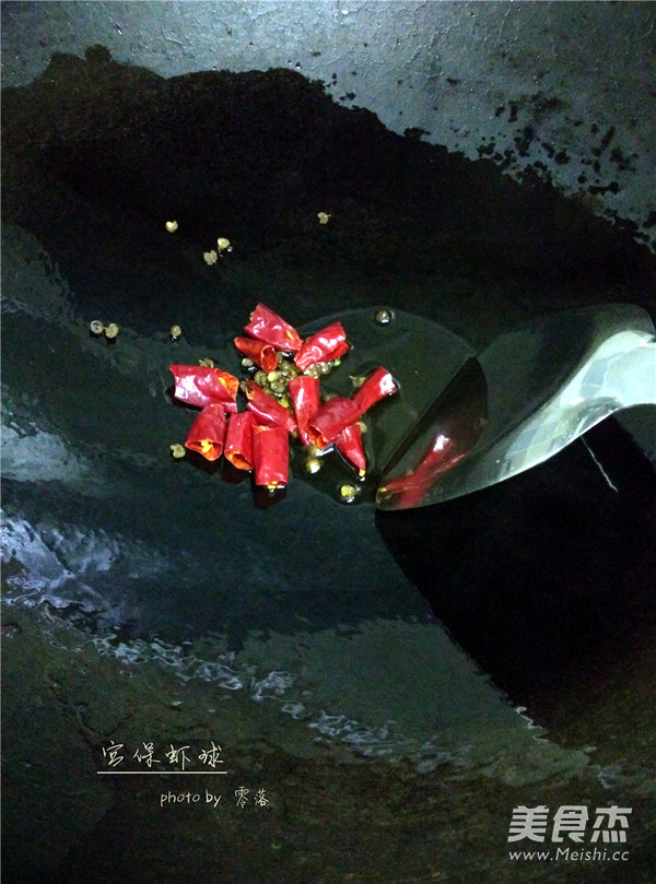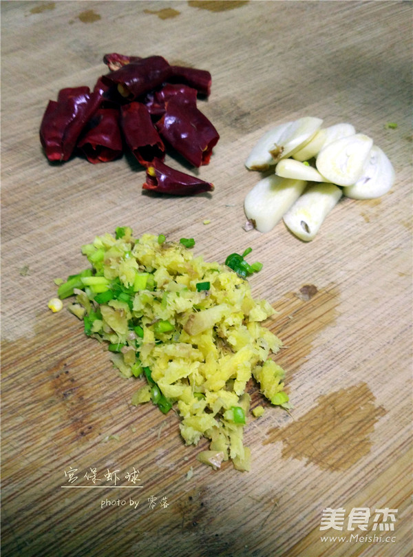 蝦仁挑去蝦線,洗淨;花生用微波爐高火加熱3分鐘,稍涼後搓掉花生衣;再備些干辣椒、花椒、老姜、大蒜、小蔥;