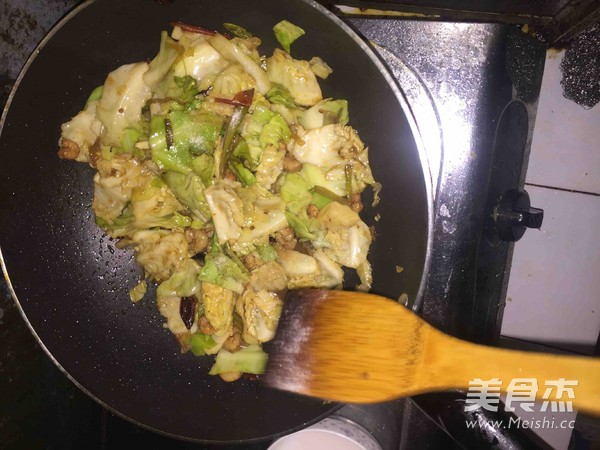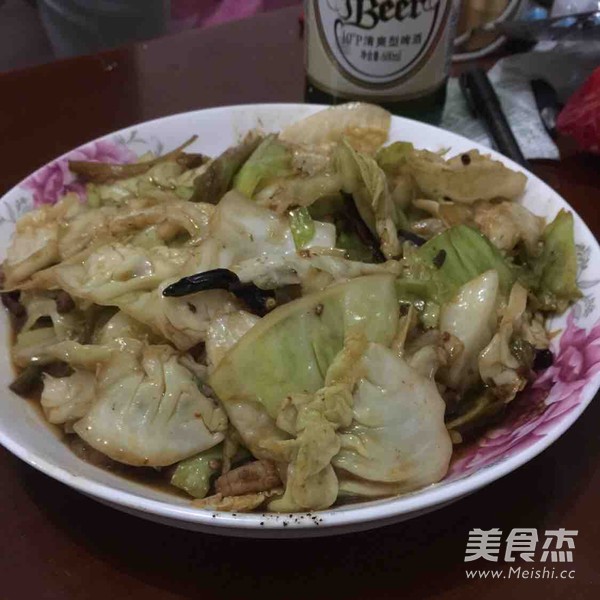 將洋白菜放入鍋中翻炒,並加入陳醋,鹽。翻炒後出鍋