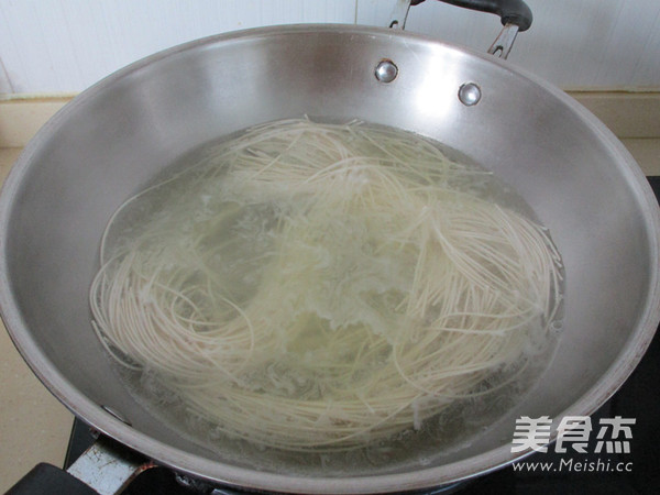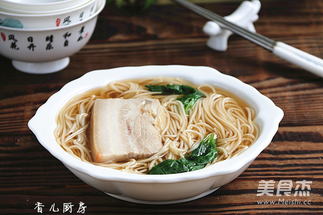 先把面條盛入碗中,再把肉湯加入,加入大肉和蔬菜即可享用