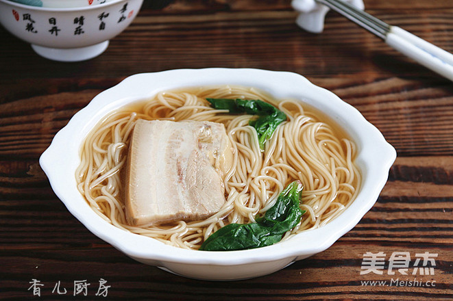 “楓鎮大肉面,面條爽滑,湯汁鮮美,最主要的亮點是面條上面的一塊大肉,看似淡淡的卻已經非常的入味,肉的口感酥而不爛,油而不膩,入口即化,確實是一碗“功夫面”。”