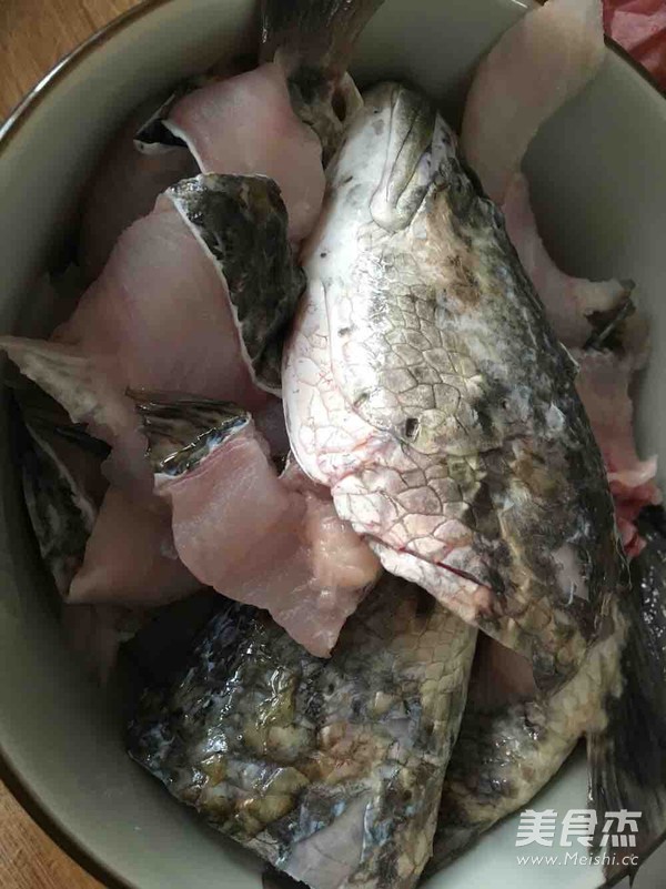 把澱粉,鹽,醬油,料酒腌制黑魚