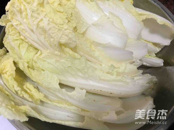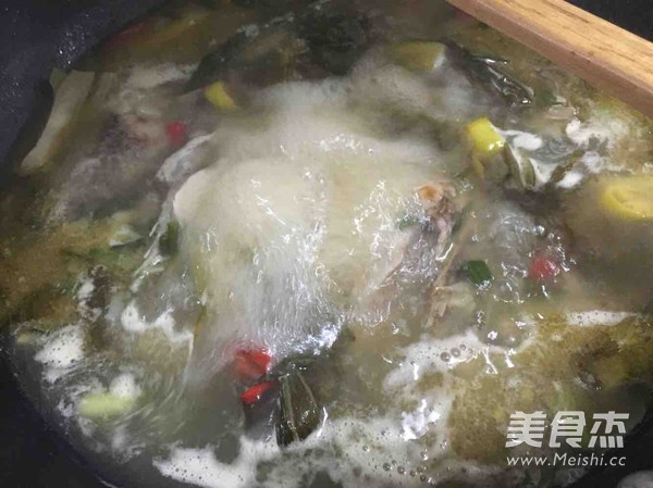 把湯汁和魚骨頭倒入白菜底盆,