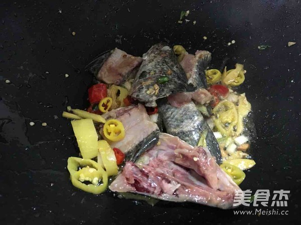 把魚骨頭放進去煸炒成金黃色