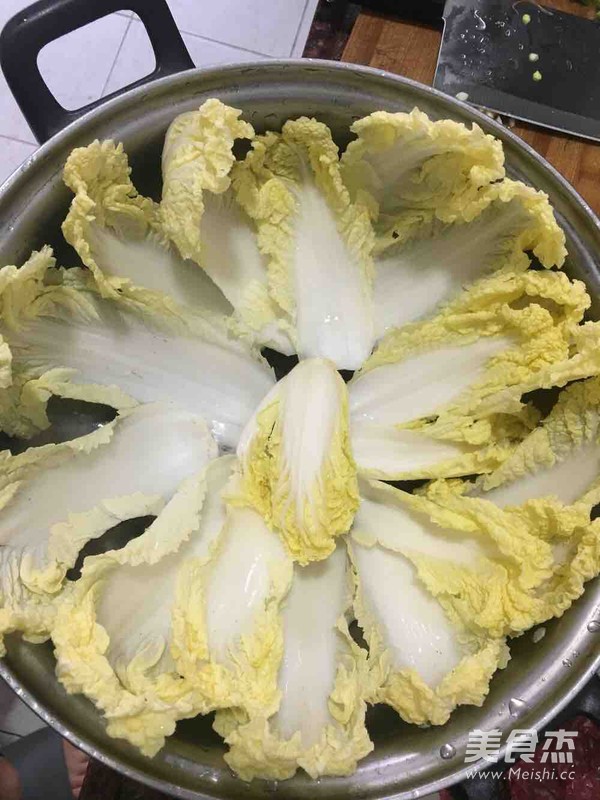 趁魚湯熬制期間,把小白菜洗淨拼在鍋底