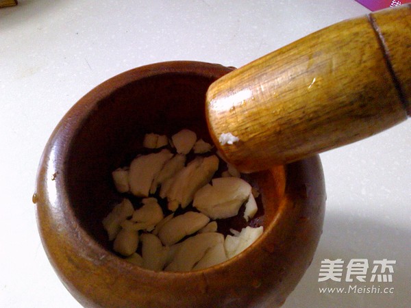 盅好的蒜泥勺出碗裡,然後生抽和熱油拌勻