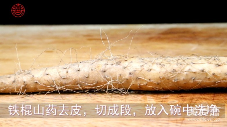 鐵棍山藥1根,去皮切成段,放入碗中洗淨;