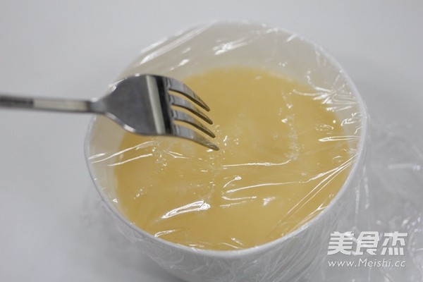 用保鮮膜包住,用叉子在上面叉幾個孔,這樣水蒸氣水滴不會掉進去,小孔是為了透氣