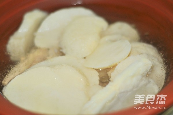 新鮮的猴頭菇用清水頭朝下泡15分鐘,水倒掉,再重復洗2-3次,這樣泥沙就可以去掉了,切片