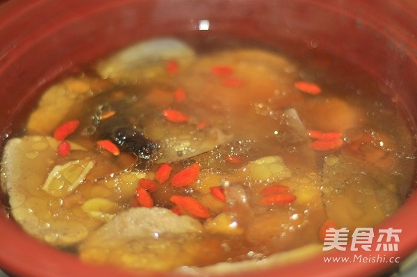 出鍋前放入適量枸杞,喝之前再放適量鹽