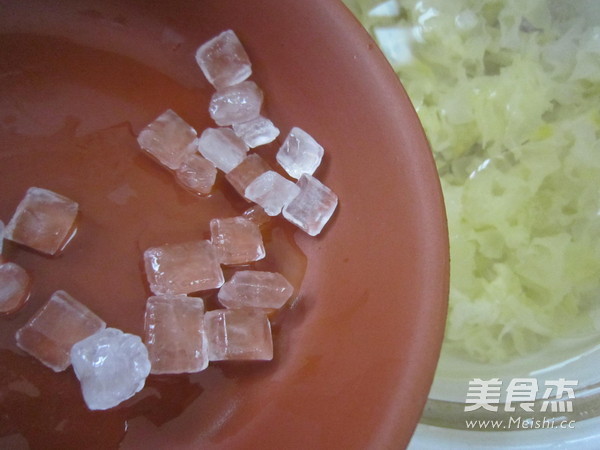 先把銀耳提前泡好,撕小朵,用剪刀剪去黃色的根