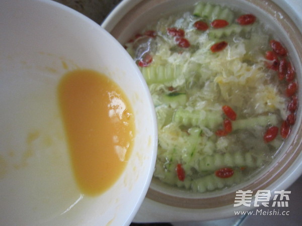 2、黃瓜和枸杞都不易久煮,加入後接著加蛋和調味料就可以了;