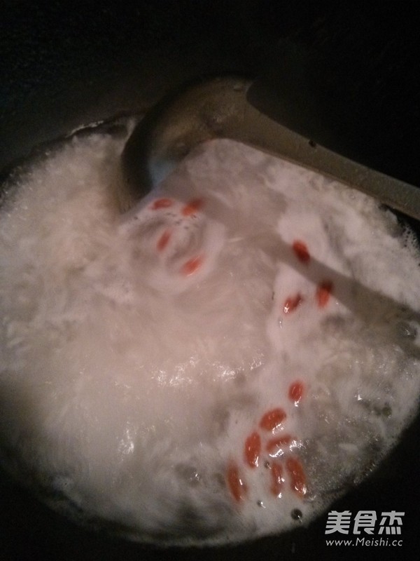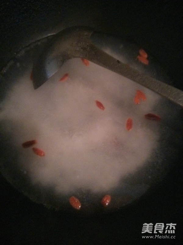 鍋裡放入適量的水,加入枸杞子煮開