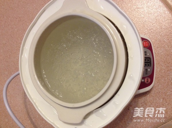 定時炖好之後,盛入碗內趁熱加入奶粉