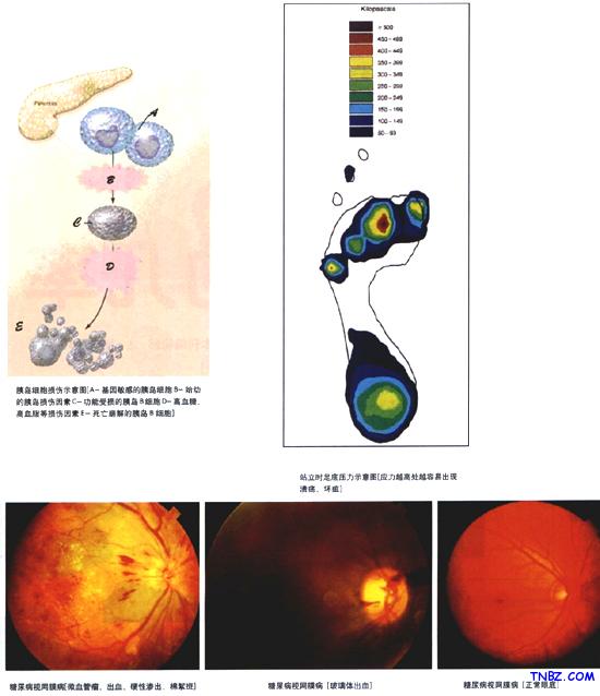 長期高血糖是微血管病變的中心環節;糖尿病微血管病變有微循環障礙、微血管瘤形成、微血管基底膜增厚等特征性改變,損害可累及全身各組織器官,通常特指糖尿病視網膜病、糖尿病腎病和糖尿病神經病變