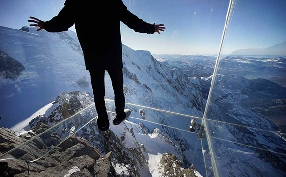 比如我們站在大廈頂層的平台上,從大廈邊緣往前看,我們會看到大廈的邊界突然消失,這樣會對大腦的判斷產生困擾,相反,如果是一條公路,一直延伸到遠處消失,就不會讓人害怕。